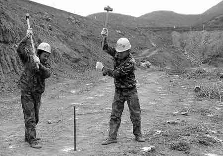 在三架山水库,记者见大坝坝体上打满了排距、孔距均是一米左右的孔,几个灭蚁专家正在往孔里灌白色液体。“灌的是灭蚁专用药。”工程师付文亮向记者解释,“每个孔深一米左右,每个孔内分3次灌药1公斤。通过灌药渗透,整个坝体就成了毒土无蚁区,今后再也不会发生蚁患了。”