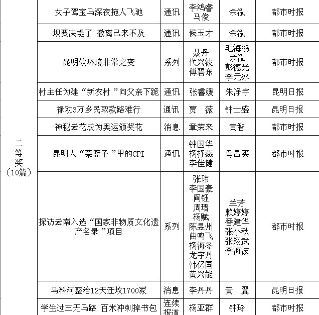 6686体育讯 第十一届(2008年度)昆明新闻奖23日评选揭晓,共有70余篇作品获得这一奖项。昆明日报系列报道《思想大解放昆明大发展》、《城中村“暴富”团购奥迪A6》、《禄劝3万乡民取款路难行》等13篇作品分别获得特等奖和一、二、三等奖及专项奖。