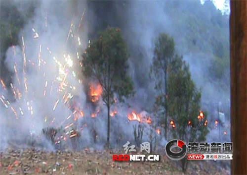 湖南岳阳运送烟花货车爆炸引燃山林(组图)