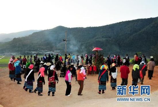 资料图片:2月3日,佤族群众吹起芦笙唱歌跳舞。 2月3日是农历新年的大年初一,云南省临沧市沧源佤族自治县帕良村,在德高望重的长者带领下,全村男女老幼聚集在村寨文化室前的打歌场,祭拜祖先,吹起芦笙,唱歌跳舞,祈求村寨来年风调雨顺,生活幸福安康。图为佤族男女老幼在村寨打歌迎新年。 李萌/摄
