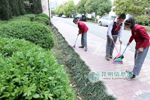 昨日,在“学雷锋纪念日”当天,金康园小学的学生们放弃假日休息时间到金康园小区打扫街道。记者谢慧/摄
