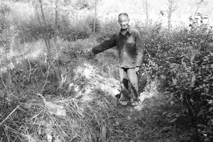 姜能山,熊家咀村原支部书记。昨日下午2点,他带着我们穿过村湾的小路,拨开两旁的荆棘,不远处的山冈上,分布着一处无名墓群。