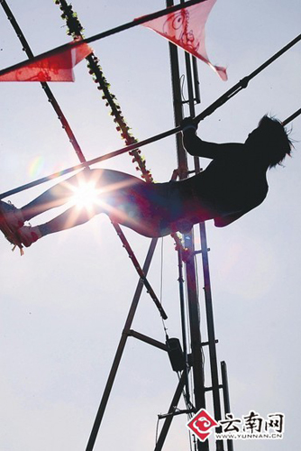 秋千触铃比赛惊险刺激。记者周灿/摄