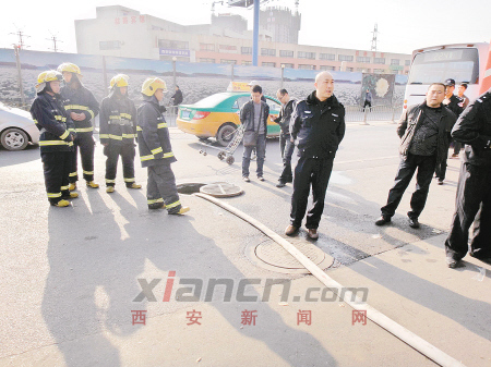 西郊市政养护管理公司的张副经理告诉记者,他们接到天然气公司的报告后立即派清淤车赶到了现场。“我们当时就确定味道是从污水井里面散发出来的,于是赶紧联络现场的3辆消防车用清水对这一段的污水管道进行冲洗,将这种味道稀释。”张副经理说。