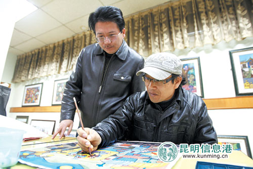 官渡民间画创作骨干经常切磋技艺。记者文惹愚/摄