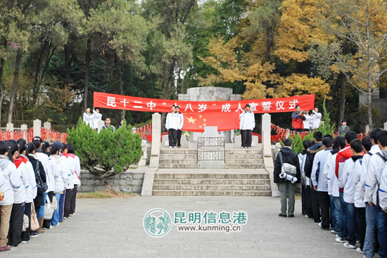 12月3日,450余名昆十二中的高三学生集体举行了成人礼仪式,他们在一二·一烈士墓前,庄严宣誓:为建设自己的国家和家乡,为中华民族的富强、民主和文明而奋斗。