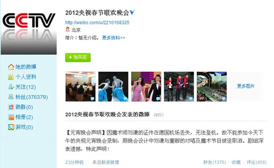 央视春晚新浪官方微博截频