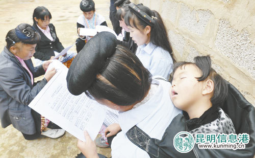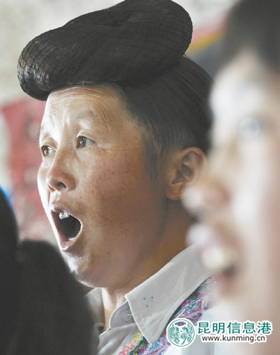 同行的安宁市文联副主席余松涛介绍,苗族天生有一副明亮高亢的独特嗓音,歌声起落变化很大。由于普通乐器的音阶不足以完全表现苗族歌声的婉转,所以他们喜爱用二胡和提琴做伴奏,或许正因有如此的和声和美声,这些相对复杂的唱法在村民们看来却很容易掌握。