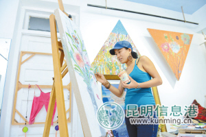 阿玲在她的黑岛工作室创作油画。都市时报记者\杨海冬摄