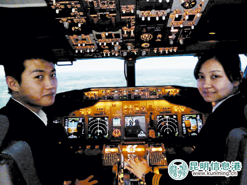 李鑫和另一名男学员同机飞行。东航云南有限公司供图