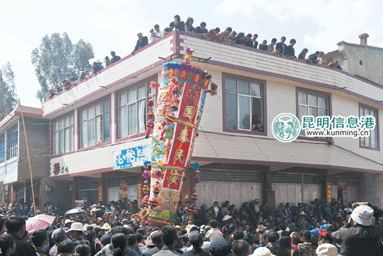 正月十四送大香,是阳宗海畔新街镇延续了数百年的传统。在每年的这一天,当地居民都会将数米高的大香送到龙泉古寺,次日则点燃大香以祈求风调雨顺。