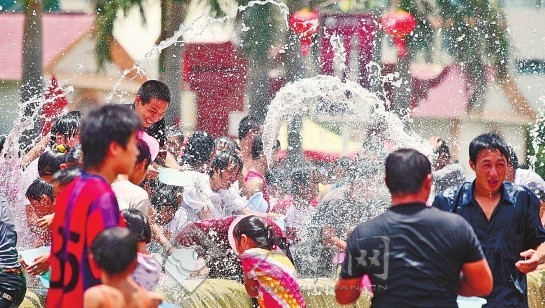 元江芒果节上人们泼水降温(资料图)