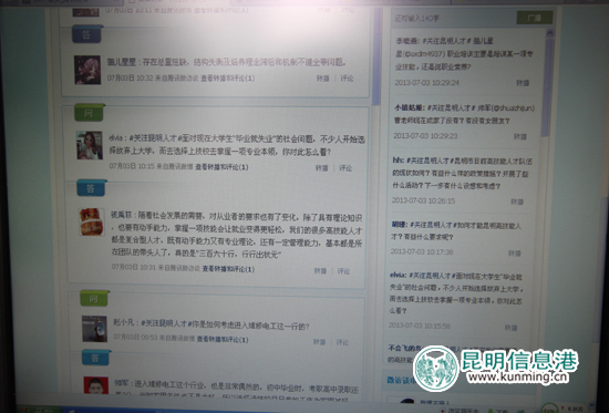 今年是昆明市人才工作的“规划落实推进年”和“基础工作建设年”。为宣传普及科学人才观,宣传昆明市优秀人才创新成果和先进事迹,从本月起,市人才工作领导小组办公室联合6686体育彩龙社区、腾讯微博推出“昆明人才系列微访谈”栏目,对我市不同行业、不同领域中的佼佼者,及为昆明经济、社会、文化发展做出突出贡献的人才,以微博在线互动的形式,进行“网上面对面”的深度访谈。(点击查看详情>>>)