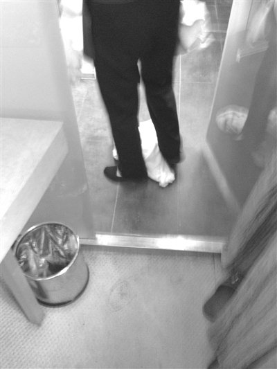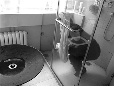 往往,她会手持一块客人用的白色浴巾或毛巾,用淋浴喷头向淋浴间的透明玻璃洒水,然后用浴巾或毛巾用力擦拭淋浴间玻璃墙上的水渍……