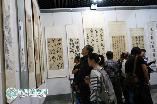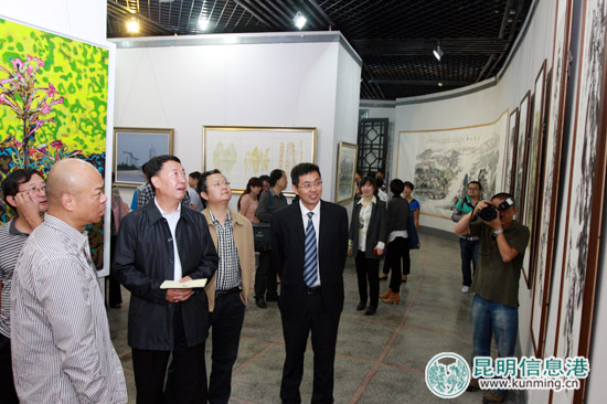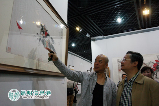出席“云南历代著名画家精品展”启动仪式的嘉宾参观画展。记者合宇聪/摄