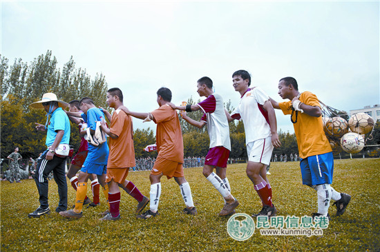 可就在半年后,在昆明举办的第七届全国残疾人运动会上,这足球队,果真夺得了盲人足球项目的桂冠。