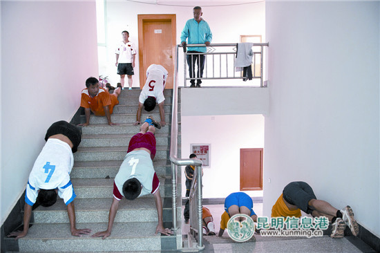 场地问题一直困扰着盲人足球队,连日来的大雨将球场淹没,乐建昆只能带领球员们在宿舍楼道里进行体能训练
