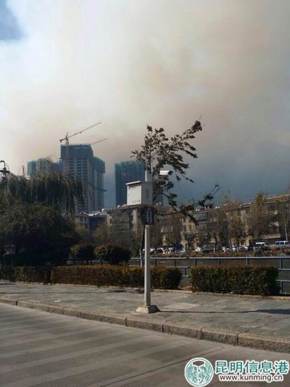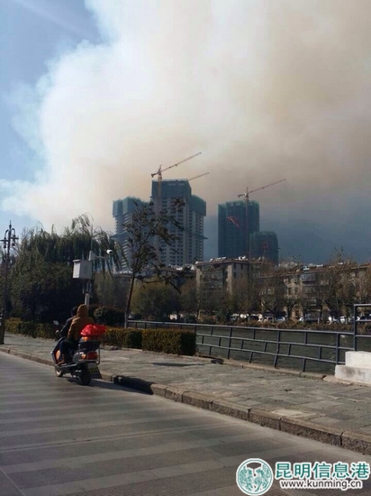 云南大理苍山突发火灾 下关市区烟雾弥漫(图)