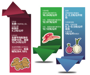 昨日,红联农贸市场里正在选购蔬菜的苏女士说,今天她准备煮鱼汤,但在农贸市场里转了一圈后她发现,现在生姜的价格已经超过鱼肉了。“鲫鱼一般就是在17元/公斤左右,而用来去腥味的生姜却要25元/公斤。”