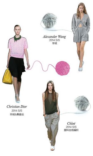 无论在秀场超模身上,还是在明星和街拍达人身上这种搭配法则被演绎得游刃有余。套头衫、针织衫,随意卷起的袖口,宽宽松松的廓型,最能演绎出自然松散的效果。鲜明色彩、特别材质的毛衣也更能凸显身体曲线的美感和复古摩登的风韵,这样的搭配法则在今夏绝不过时。不论是扣子只扣一个的Alexander Wang灰色羊绒针织连体衫,还是Dior优雅的短袖羊绒桑蚕丝短T和看着像毛衣其实是塑料丝线编织的Chloé无袖背心,或者是Burberry Prorsum的美利奴羊毛针织切斯特大衣,这些看似很厚其实又舒服又透气的毛物都同样是夏日OL和潮人们的必备囊中之物。