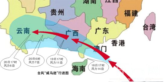 今年第9号台风“威马逊”最早可能于18日中午到晚上在粤西或海南沿海地区登陆,登陆时强度可达强台风级别(14级左右)。