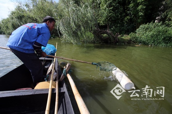 年过七旬的刘永定走在滇池边,对滇池一草一木饱含深情。他说,上个世纪90年代,他在国外时接到上级通知,组织了十余人的团队,来到滇池边六甲一个名叫小河嘴的地方住了下来,开始了研究滇池治理项目。这是国家对滇池治理的一个“先头小分队”。那时,从大观河往滇池看,完全就像一个大草原,水葫芦一片连成一片,人可在草海上行走。若翻开水葫芦下面,黑乎乎的水质,臭得让人恶心,木船根本无法通行。快艇走过,后面的蚊子像云一样。每到八九月份,蓝藻暴发,滇池北岸一带绿油油一片,持续了好多年。