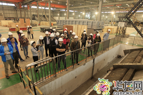 “从企业看信心”经济形势主题采访团的记者编辑们,听取重庆三峰环境产业集团介绍垃圾焚烧设备的生产。 首席记者 李靖/摄