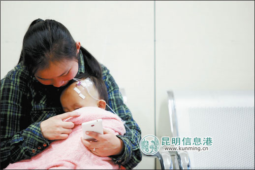 12日下午,昆明市儿童医院书林院区门诊部,挤满了患病的小孩,他们大部分是5岁以下的幼童。不少孩子都有咳嗽、发热的症状。