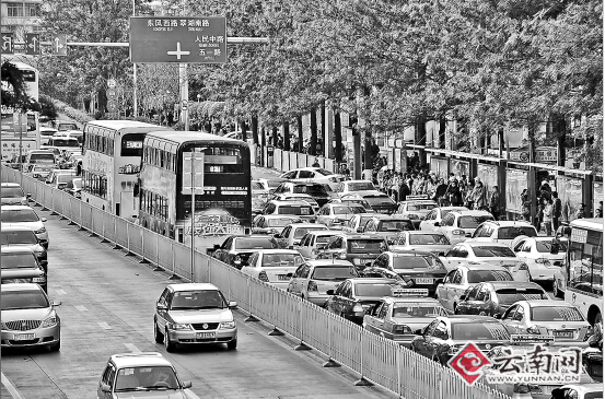 青年路作为昆明南北向交通的主干道,刚好穿过主城的商业核心区,平日里车流和人流都很大,拥堵已司空见惯,如果遇到交通事故,能把你堵到没脾气。因为易堵车,许多出租车司机都不愿轻易经过青年路,“十次过来九次堵”,有出租车司机戏称,一到节假日,这里能从早高峰一直堵到晚高峰。