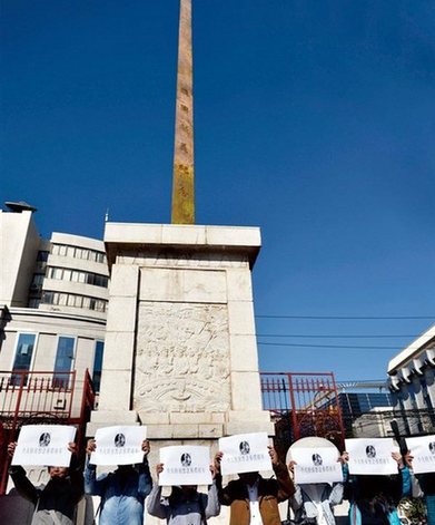“12月25日,西方的圣诞节,我们的‘护国节’。”纪念活动于昨日14时许开始,年轻人们列队上前,向护国起义纪念碑敬献鲜花。随后,他们又在碑前列队,同时举起一块正反面均印着纪念文字的题板。