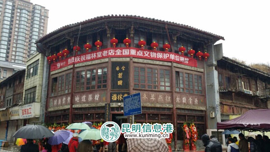 据了解,1990年福林堂被昆明市盘龙区政府列为“重点文物保护单位”;2003年5月,福林堂被批准成为昆明市第四批文物保护单位;2013年3月,福林堂正式被国务院核定公布为第七批全国重点文物保护单位,去年被省政府公布授牌。1月9日,福林堂全国重点文物保护单位揭牌仪式在该店隆重举行,这标志着福林堂不但承担着传承中医药文化的历史责任,也将成为市民了解和学习中医药文化的窗口。