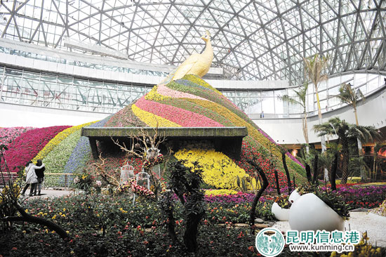 “花之城”内的巨型孔雀。 记者刘凯达/摄