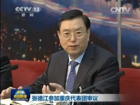 央视网消息(新闻联播):3月9日,中共中央政治局常委、全国人大常委会委员长张德江在重庆代表团参加审议。在听取代表发言后,张德江感谢代表们对全国人大常委会工作的支持和监督,表示要继续全面推进依法治国,维护宪法法律权威,顺应人民群众期待。他强调,要自觉坚持党的领导,坚定人民代表大会制度自信。要充分发挥人大在立法工作中的主导作用,着力提高立法质量。要正确处理改革与法治的关系,确保改革沿着法治轨道依法有序推进。要依法行使监督职权,增强监督工作的针对性和实效性。要坚持代表主体地位,运用法治思维和法治方式推动人大工作完善发展。