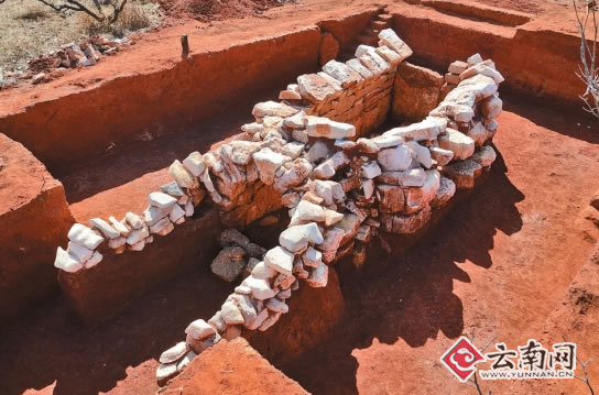 云南省考古文化研究所工作人员万杨介绍,两座墓属于“粱堆”墓。“粱堆”是对有高大封土堆墓的一个泛称,此类墓葬广泛分布于滇中、滇东地区,属魏晋南北朝居多。此次考古发掘全面运用了小型无人机航拍、考古数字化管理平台、三维建模、RTK和全站仪测绘等先进的科学技术手段,发掘出的一号墓地表可见封土高约1.5米,直径约10米。墓葬呈“凸”字型,墓室的墙体和券顶用大小不等的石块建构,石块之间未使用任何粘连材料,中空的墓室全靠石块之间的重力挤压而成。由于古墓多次被盗,随葬器物被洗劫一空,经专家整理修复,发现了少量的陶甑、陶钵、铜耳杯、鎏金铜器残件等。相邻的二号墓无论规模、形制还是出土的器物,都比一号墓要好。还建有过滤於土、防止水沟堵塞的先进排水沟,更为难得的是,二号墓发现了铜跪俑、铜刁斗、瓷碗、人形金箔等陪葬物品。