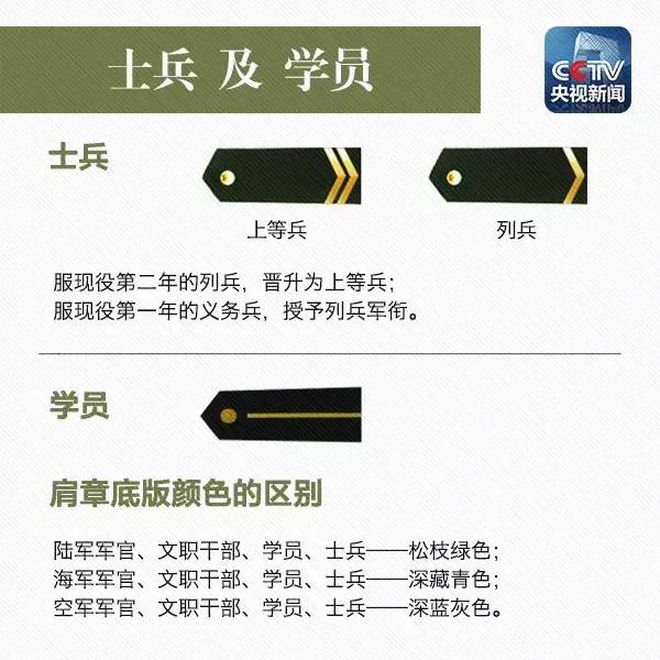 除此之外,军衔中的讲究还有很多。文职干部的军衔有什么不同?肩章底版颜色又有什么区别?戳图,教你一眼识别军衔等级。