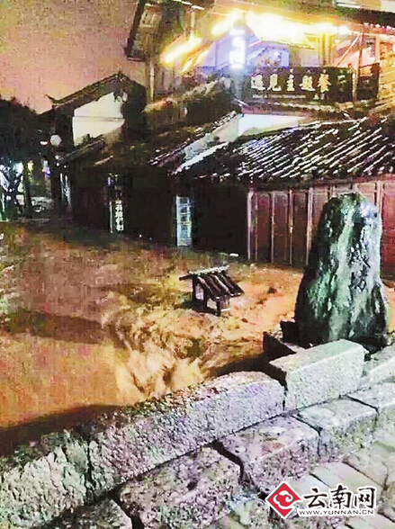 暴雨导致古城内小河倒灌