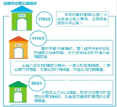 据统计,昆明市主城区目前已有公厕1418座,而按照2500人1座公厕的国家标准,按主城区常住人口近400万计算,昆明应有将近1600座公厕。同时,还存在主城区公厕布局不合理、数量不足、档次不高、保洁不到位和群众如厕难等问题,都严重影响了昆明的城市形象。在全省积极行动起来开展“厕所革命”之时,一直致力于建设区域性国际都市的昆明更要争先。