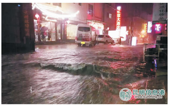 被困在古城区的程晨回忆,当晚丽江古城街道上到处是水,根本没办法通行。行人都是雨衣、雨伞、雨鞋“全副武装”。很多人都挤到了古城的各个酒吧内,也许是之前就在新闻上看过丽江古城被淹的情况,大家并未显得很慌张。“我们等了好久,水还是没退下去,走出酒吧的时候,不记得是几点了,只记得积水已经快没过膝盖了。”
