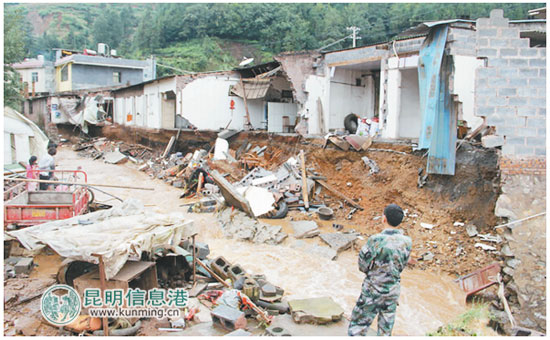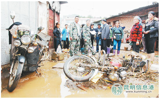 另外,40年不遇的大暴雨袭击了曲靖宣威田坝镇。直到昨天,宣威田坝镇的不少村民,还在家里挖刨19日晚被泥沙掩埋的家具、财物。 19日下午5点左右,一场40年不遇的大暴雨袭击宣威市田坝镇,至20日1时降雨量达189毫米。暴雨造成全镇多处山体滑坡,多处民房被淹倒塌,农作物严重受损,部分村断电,交通中断。田坝镇玉米水稻全部绝收,受灾严重。