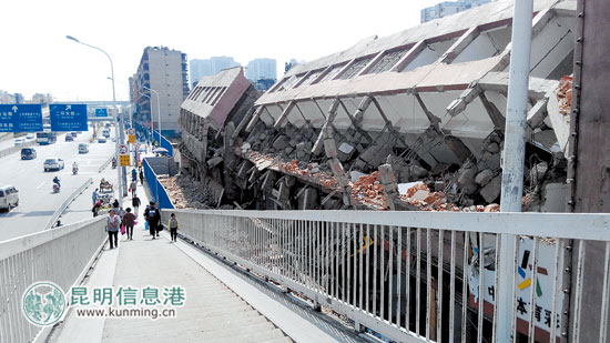 “下午赶回来,堵在路上回不去不说,还得忍受漫天灰尘。”6日下午3时,东郊路东方上城居民顾林的车,被从州市上来的两辆四桥大卡车死死堵在彩云北路转往昆明冷冻厂的道路上,此时,他左手边东站临时过渡农贸市场的拆迁工作正如火如荼开展,漫天尘土让他不敢摇下车窗。“我们1号去滇东玩,6号赶回简直不认识了。”顾林说,冷冻厂出入大车堵路是老问题,如今加上另一边拆迁,整个东郊彩云北路基本就是个“脏乱差堵”的大工地。