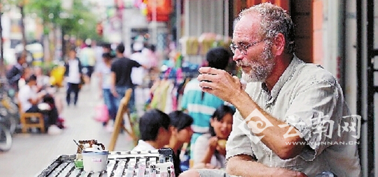 弗雷德里克大学期间到中国沈阳读书,因为与昆明姑娘相恋,毕业后来到昆明,如今已有4年。“昆明和其他中国的城市不同,这里有山有湖很有特色,而且气候非常好,虽然爱情没坚持下来,但我决定暂时住在这里。”弗雷德里克的家乡在德国汉诺威,那里也是一个著名的旅游城市。