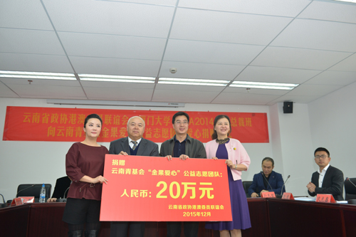 云南省政协港澳委员联谊会向云南省青基会金果爱心公益志愿团队捐赠人民币18万元。
