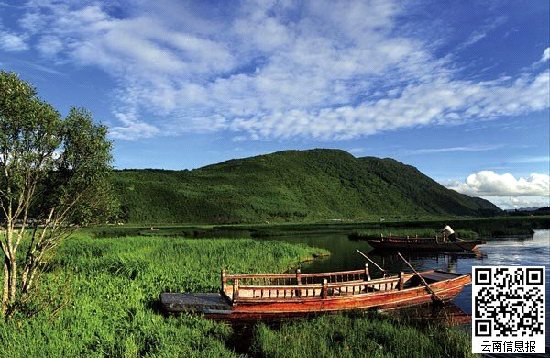 腾冲市北海湿地保护区四面环山,地理位置特殊,属高原火山堰塞湖生态系统,大片漂浮于水面的陆地,犹如五彩缤纷的巨型花毯,具有生物多样性复杂、生产力极高的特征。北海湿地如同“水上草原”, 水草密密麻麻,盘根交错在一起,日复一日,年复一年,旧草腐烂,新的长在腐烂的草根上,最后形成整片的草甸浮在水面上,宛如一个一个的小草岛。当地人经常把切开的一小块草排当竹筏子来划,或是捕鱼虾。泛舟湖面,空气里飘着草叶的清香,芦苇丛中不时传来嘎嘎的野鸭叫,清新的空气宛若置身在大草原。
