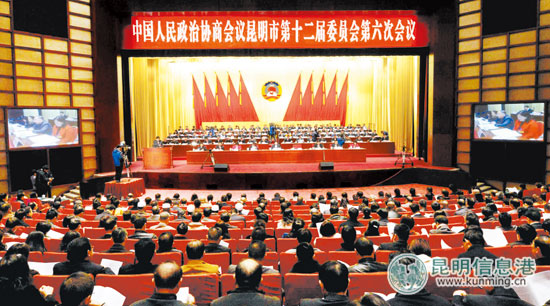 1月12日,政协昆明市第十二届委员会第六次会议在昆明会堂开幕。记者杜文蕾/摄