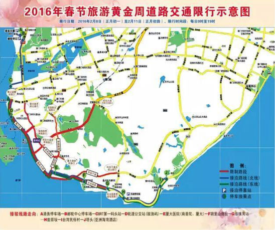 厦门市警方公布了2016年春节期间的交通限行措施。