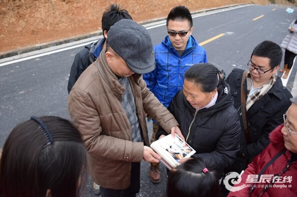 一见面,两家人立马亲切地握起手来,“好久不见啊!”寒暄之意,仿若久未相见的亲人。 星辰在线工作人员拿出三年前石大姐在长沙时拍摄的照片,制作成精美的相册送到她手中,一群人高兴地在路边便看了起来,“你看,这是我哩!”