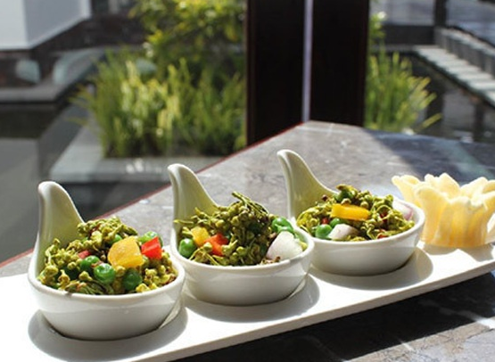 萝莉推荐:石榴花就像是一位邻家萝莉,她小巧精致,有着阳关般的橙色肤色。对待这种小可爱,当然得更花些心思。首先,将新鲜石榴花的花蕊去除,保留花瓣部分;然后,将需要其在盐水中浸泡1-2天,待花瓣变软、呈淡黄色,才能煮食。