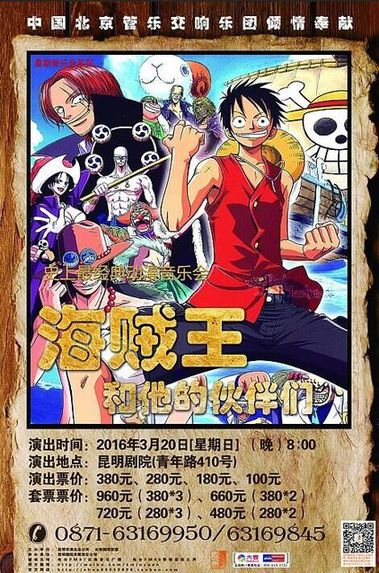 6686体育讯 记者陈盈盈 记者获悉,世界著名电视动画系列《海贼王》交响视听音乐会将于3月20日晚上在昆明剧院奏响,音乐会将为昆明广大《ONEPIECE》爱好者以及交响乐爱好者打造一场精彩的视听盛宴。