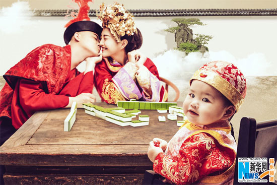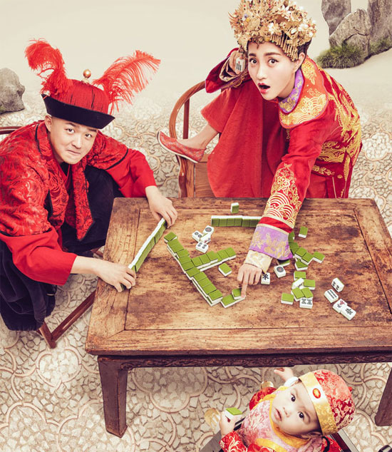 即将在3月底举办婚礼的包贝尔、包文婧,近日通过网络曝光了一组婚纱照,向来都走搞怪风格的包氏夫妇,可没放过这样难得的机会,连一生只有一次的婚纱照都是“不走寻常路”的鬼马路线。谁说婚纱照一定要男西装女白纱,这不一家三口打麻将也颇有一番风味。