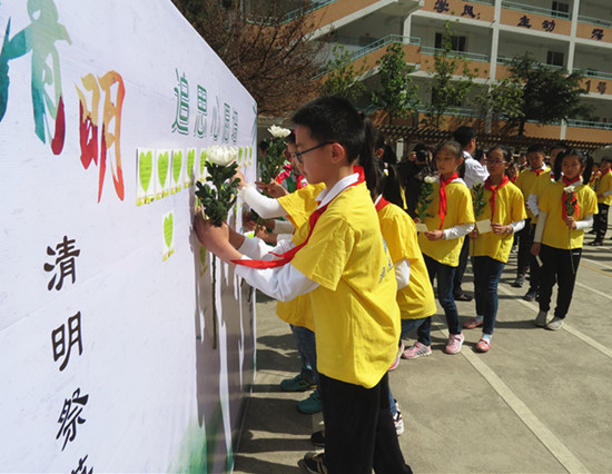 4月1日上午,由昆明市文明办、昆明市教育局联合举办的清明“网上祭英烈”主题活动在盘龙小学启动。全校师生通过“颂英烈”、制作追思心愿卡、千纸鹤、黄丝带、宣读倡议书、网上留言寄语等形式向先贤烈士表达缅怀之情。